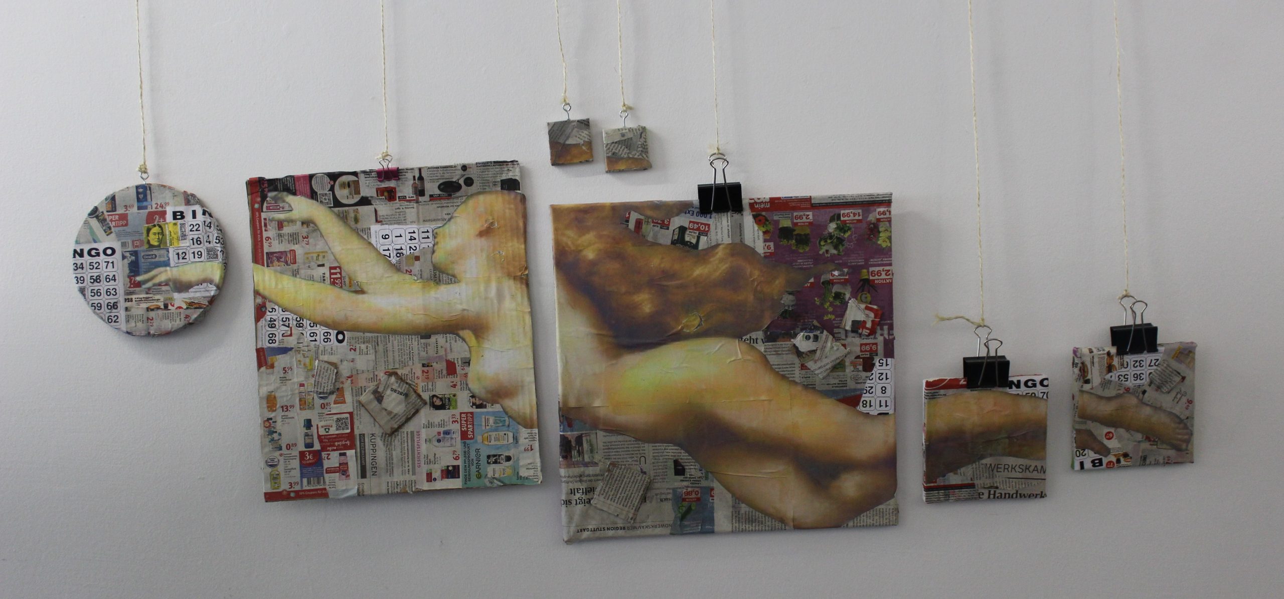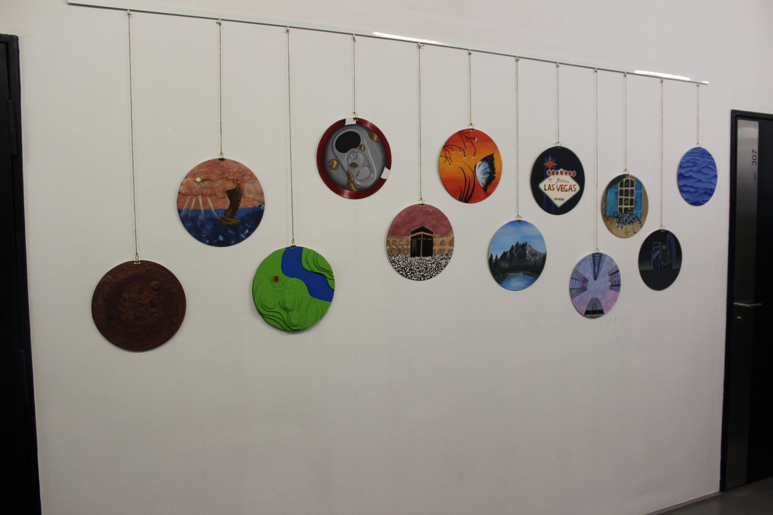 Im zweiten Stock geht die Zeitreise ganz konkret in die Vergangenheit der Schülerinnen, denn hier sind neben vielen aktuellen Arbeiten auch Werke aus Kindertagen ausgestellt und man sieht, wie früh das Talent der jungen Künstlerinnen deutlich wurde. Ein weiteres Motto für Werke war „Nah dran“, das mit Hilfe von Fotografien umgesetzt wurde. Direkt daneben findet ein „Blick durch das Runde“ statt- kreative Umsetzungen in Acryltechnik auf einem runden Untergrund. Außerdem werden viele freie Arbeiten der Schülerinnen präsentiert, bei denen die unglaubliche Kreativität und Liebe zum Detail deutlich wird. Teilweise stecken in den Zeichnungen über 30 Stunden Arbeit, wie Melina berichtete.