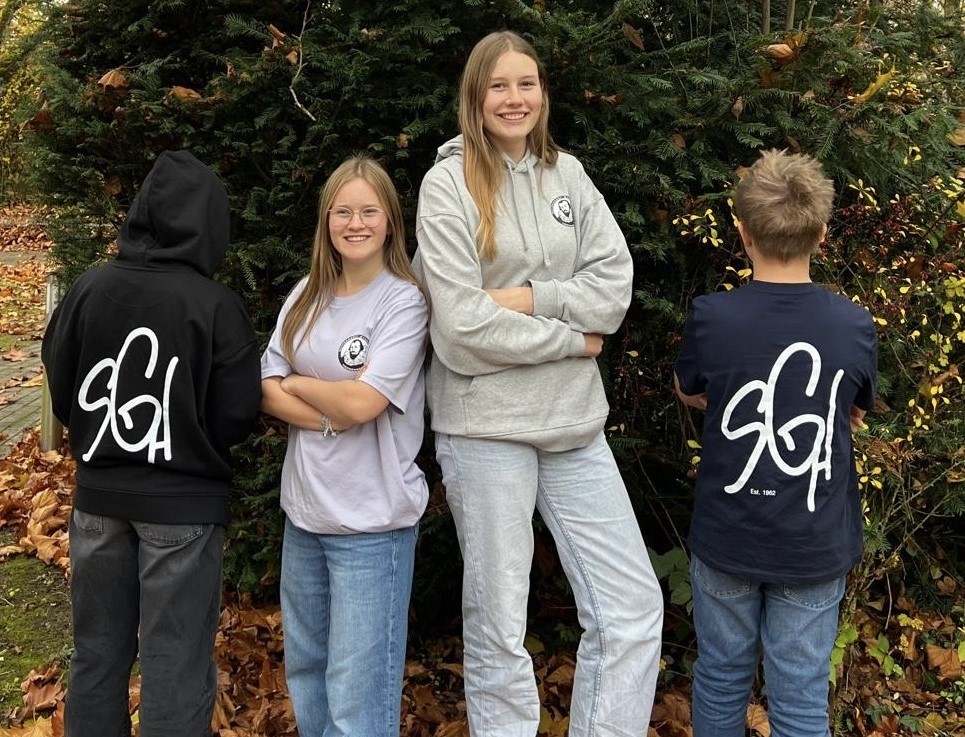 Lust auf einen neuen kuscheligen Schulpulli? Das ist seit langem der Wunsch vieler Schülerinnen und Schüler am SGH. Diesen Wunsch erfüllt euch die SMV gerne. Selina und Zümra aus der J1 zögerten nicht, sich intensiv auf die Suche nach einem Anbieter zu machen, hinter dessen Produkten wir als Schule zweifelsfrei stehen können. Und ein fantastisches neues Design haben sie für euch auch gleich entworfen. Nach all der Arbeit freuen wir uns nun riesig, euch die neuen Schulpullis und T-Shirts präsentieren zu dürfen.
