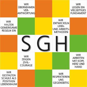 Wir laden alle ein, die Qualität des schulischen Lernens und Zusammenlebens zu verbessern und persönliche Fähigkeiten einzubringen. Wir erwarten, dass unsere Regeln eingehalten werden. Insofern sind unsere Leitsätze gleichermaßen Anspruch wie Chance.
