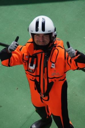 Für die vielen Luftaufnahmen, die von der Polarstern und der Neumayer-Station bislang gemacht wurden, sind zusammen mit unseren beiden Filmteams, natürlich auch die Heli-Leute zuständig. Für die beiden Helikopter vom Typ MBB BO 105, sind 2 Piloten und 2 Techniker verantwortlich. Den Filmteams stehen insgesamt 30 Flugstunden zur Verfügung. In Absprache mit Harald von der Bordwetterwarte entscheidet Hans als Hauptverantwortlicher (Pilot u. Flugbetriebsleiter) gemeinsam mit Olaf (Fahrtleiter) und dem Kapitän, ob ein Einsatz notwendig und die Bedingungen gut genug sind, so dass der Heli in die Luft gehen kann. Ein Flug in der Antarktis ist nicht vergleichbar mit einem Flug in Deutschland, denn wenn man über Land fliegt gibt es viele markante Punkte wie Wälder, Häuser oder Berge, welche dem Piloten eine Referenz bieten. Hier in der Antarktis sieht er eigentlich nur Eis, Schnee und Wasser so weit das Auge reicht und somit muss er sich komplett auf die Navigationstechnik verlassen. Außerdem ist die Temperaturbelastung für die Hubschrauber im ewigen Eis höher. Die größte Herausforderung für die Piloten ist jedoch ein besonderes Wetterphänomen: das „White out“. Dieses resultiert in einem kompletten Verlust der Orientierung über die Fluglage des Hubschraubers, da man draußen keine Einzelheiten mehr erkennen kann, geschweige denn den Horizont, weil keine Kontraste mehr wahrnehmbar sind. Wer beim Skifahren schon mal in eine Nebelfront oder einen Schneesturm hineingeraten ist, kann sich das vielleicht etwas vorstellen, denn auf der Piste ist man dann auch ziemlich orientierungslos und hangelt sich von Pistenmarkierung zu Pistenmarkierung, um den Weg zum Lift zu finden. Da man mit einem Helikopter nicht einfach, wie ein Skifahrer stehenbleiben oder rechts ranfahren kann, muss ein Flug sehr genau geplant und überwacht werden. Relevante Kriterien sind die Wolkenuntergrenze, die Sicht, sowie die Fluggefahren (z. B. Vereisung, Wind, White out). Über Funkt steht der Pilot während des Fluges unter anderem mit einem seiner Kollegen, welcher den Flug von der Brücke aus überwacht, in Verbindung. Auch Start und Landung von/auf der Polarstern stellen eine Besonderheit dar, da das Schiff nicht nur steht, sondern auch fährt und je nach Wellengang oder Eisbedingungen in jede Richtung schwanken kann. Desweiteren können durch die Schiffsaufbauten Turbulenzen entstehen. Alle Beteiligten sind begeistert von der Fliegerei, doch die Sicherheit steht immer im Vordergrund. Der Kameramann sitzt gut angeschnallt in der offenen Tür (mit warmen Schuhen und drei Paar Socken!), da er von dort freie Sicht hat und wunderschöne Aufnahmen machen kann. Brian, der Regisseur des amerikanischen Filmteams, erklärt dem Piloten genau was sein Kameramann filmen soll. Nach diesen Wünschen werden dann dementsprechend enge oder weitere Kurven, näher oder weiter weg, um die Polarstern geflogen. Bei schönem Wetter gibt es immer Zuschauer an Deck, die fasziniert beobachten was vor sich geht.