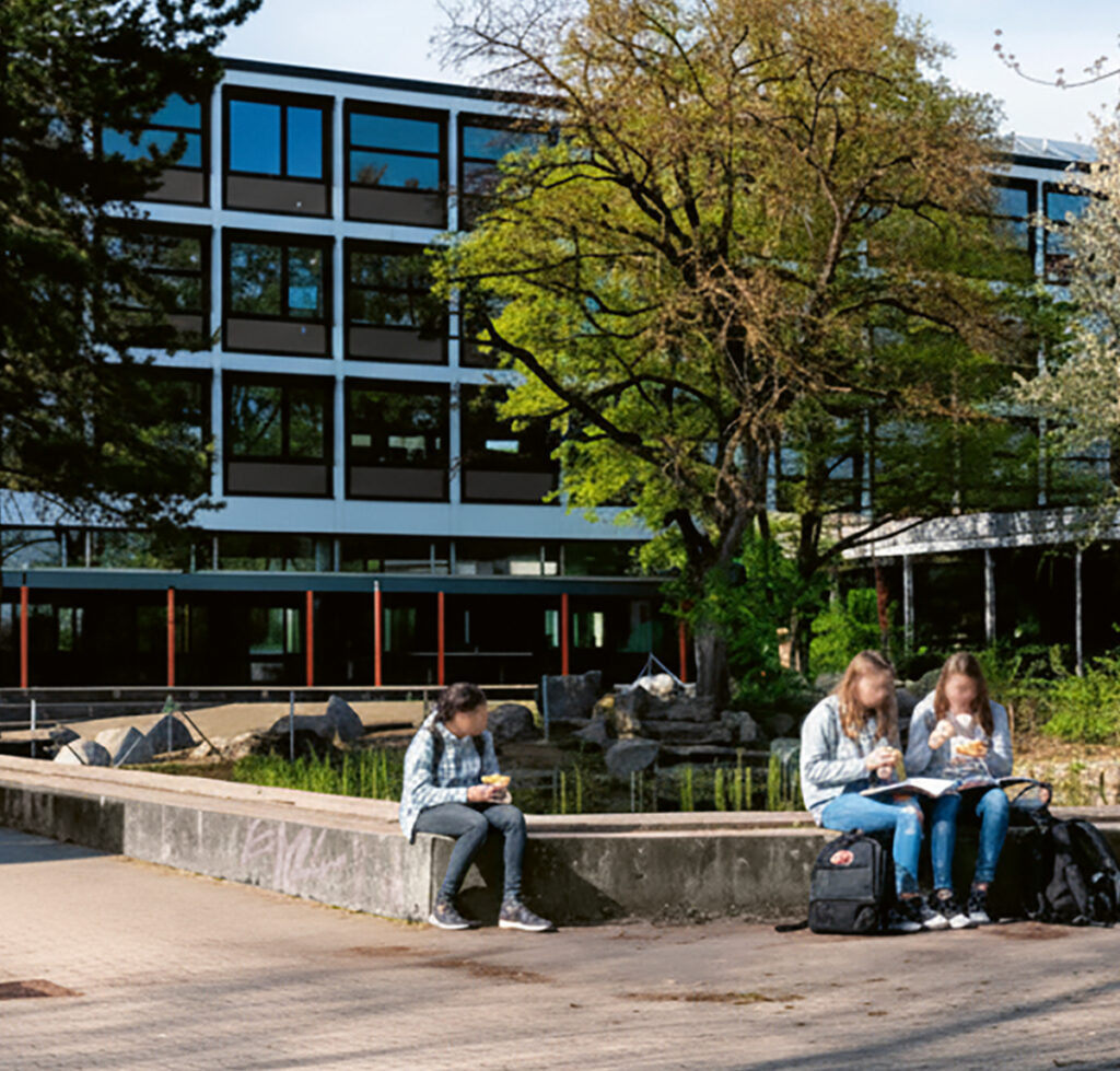 Schulleiterin Frau Bertsch-Nödinger, Simon Zolg als Stellvertreter sowie die Abteilungsleiterin Frau Hamann-Herm und die Abteilungsleiter Herr Stahl und Herr Wiebel leiten das Schickhardt-Gymnasium.